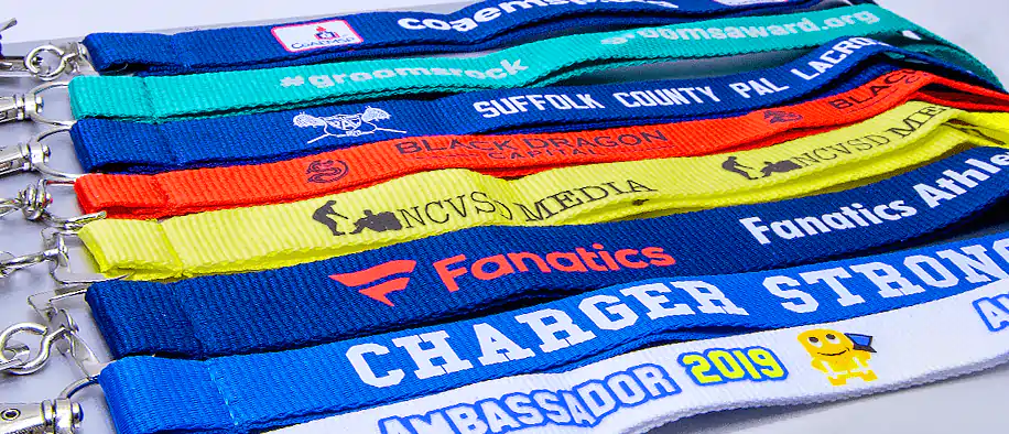 All of our imprinted lanyards are imprinted by using a high-quality silk-screen printing process. Each color plate is set up separately and individually applied to a polyester lanyard. The result is an imprint that is professional looking, durable and alive in color. You have our guarantee that your imprinted lanyards will not smudge or rub off.